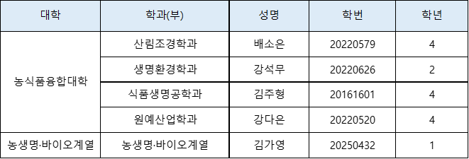 | [2025학년도 2학기] DEAN’S LIST 선정자 안내 | |